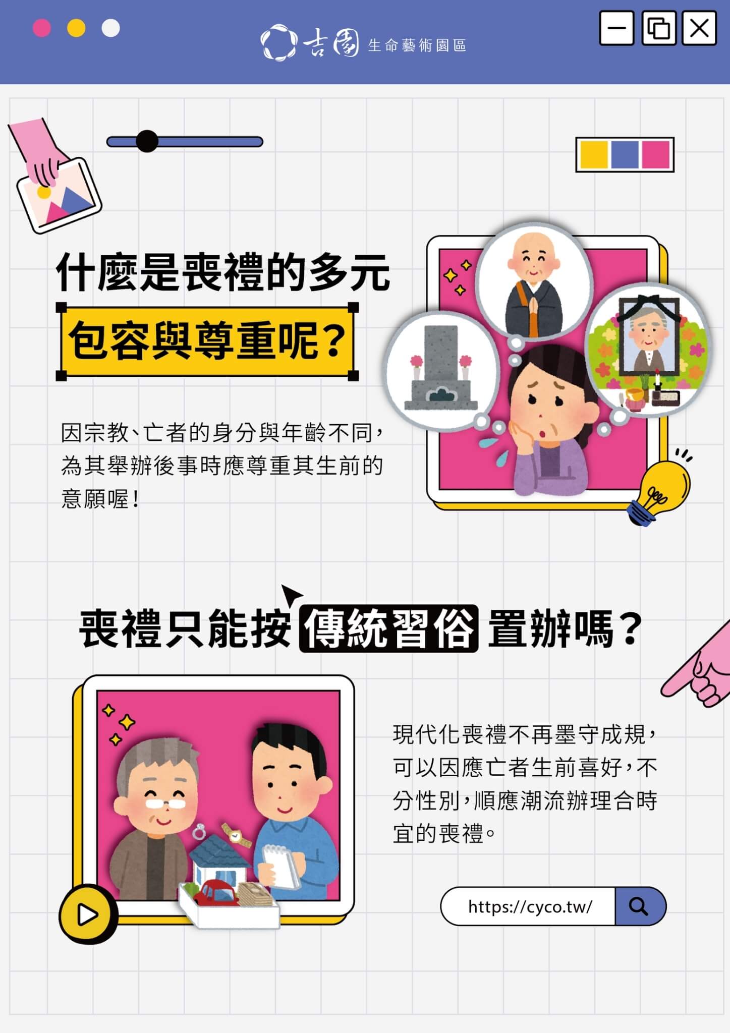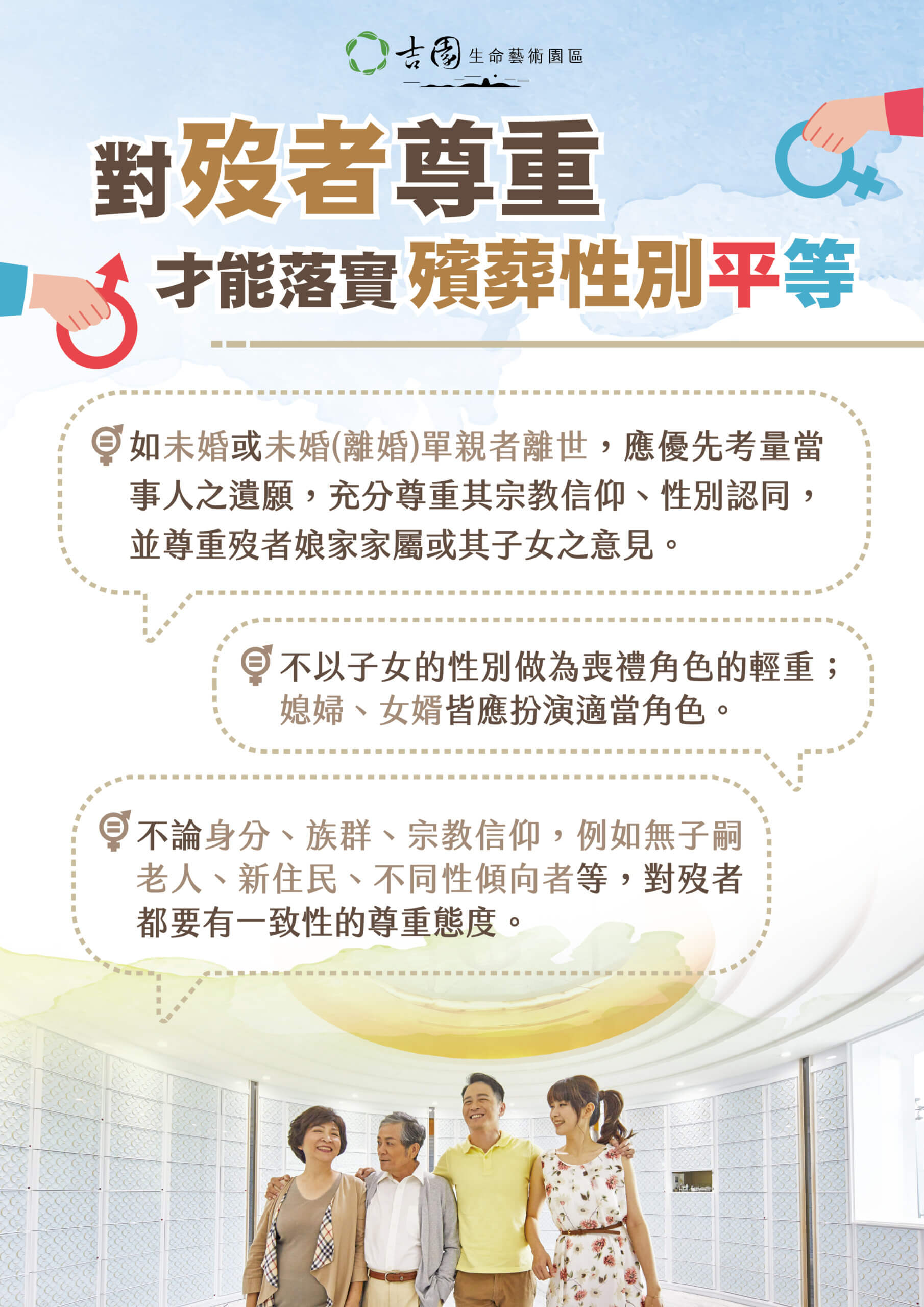 殯葬多元與尊重 殯葬性別平等 落實殯葬自主 與 殯葬性別平等 尊重多元宗教 長者與行動不便者祭拜路線圖 長者/行動不便者輪椅與貼心雨具提供服務 環保祭拜 雙手合十不拿香 落實生命教育 By 吉園2023/06/26Leave a commentPost navigationPreviousPrevious post:2023年愛映岡山【太空漫遊】公益市集圓滿結束NextNext post:吉園新設ATM存提款機