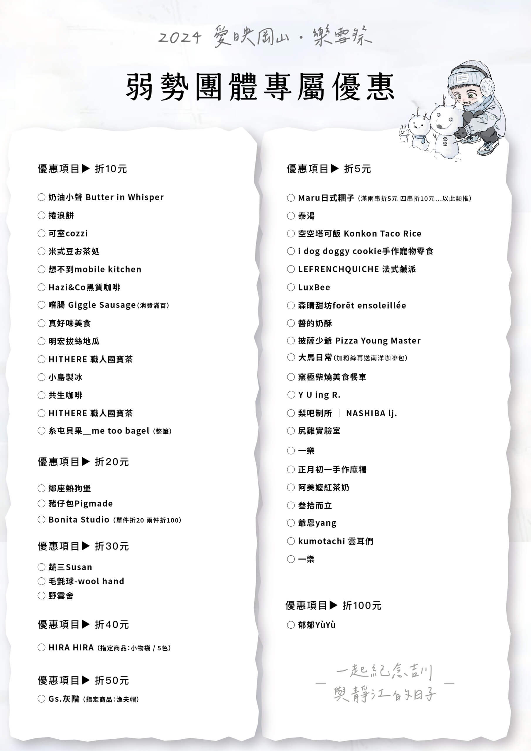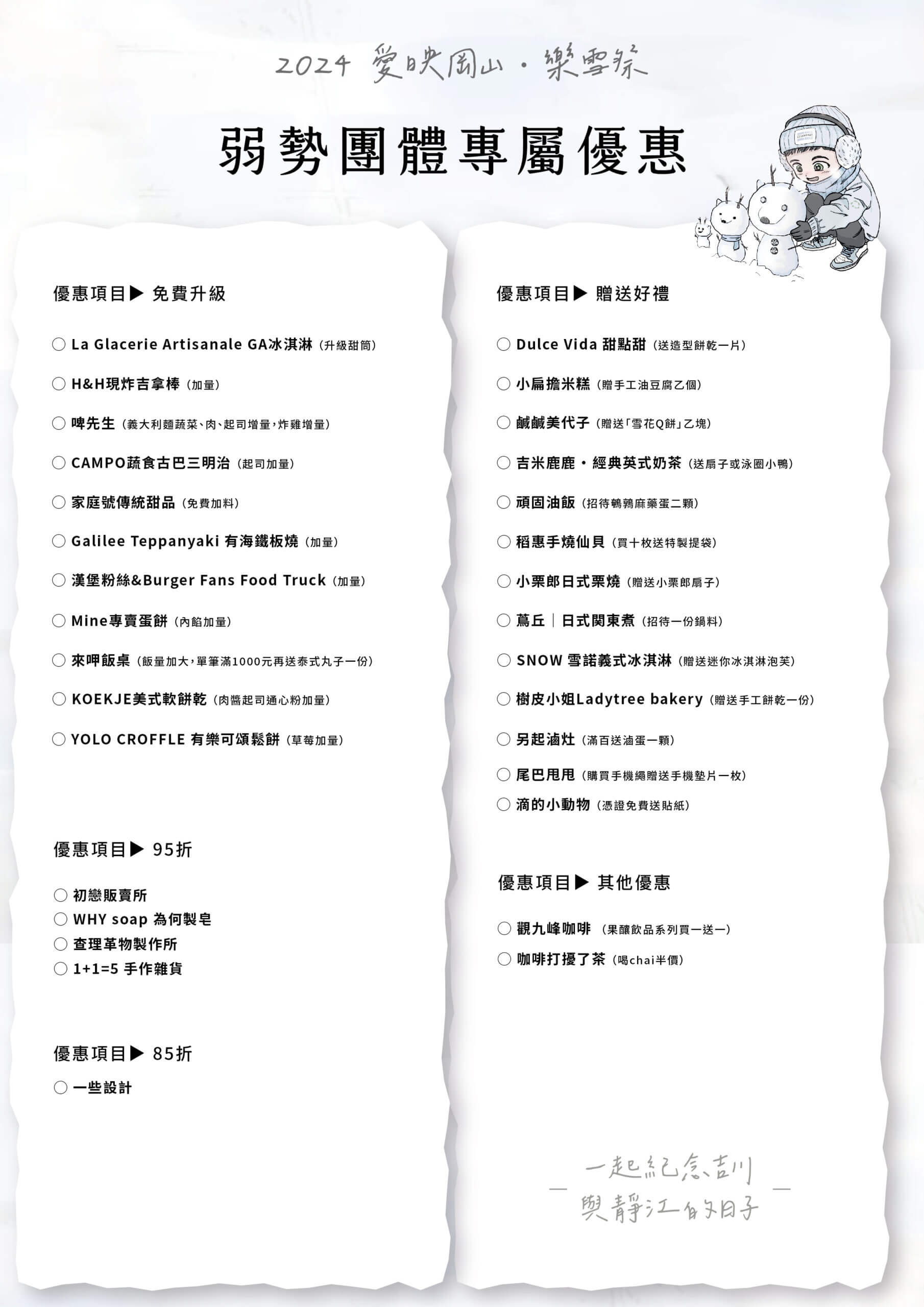 本次活動集結全台130家風格餐飲、原創手作品牌,以「白色」「雪」「雲朵」為意象為本次樂雪祭設計限定產品。
